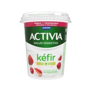 Leche desnatada pasteurizada, nata pasteurizada, azúcar, fresa (4,4%), leche desnatada en polvo, puré de frambuesa (0,6%), almidón de maíz, aromas naturales, concentrado de zanahoria y arándano, zumo concentrado de limón, sólidos lácteos, bifidobacterias y otros fermentos lácticos y bacterias y levaduras propias del kéfir.