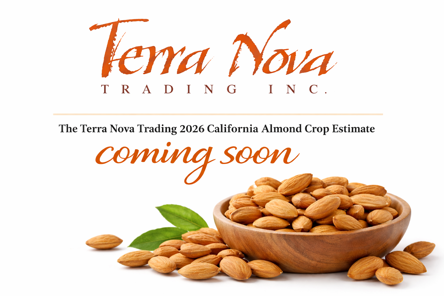 Ubicada a las afueras de San Francisco, a las puertas del Valle Central de California, donde se origina el 80 % del suministro mundial de almendras, Terra Nova tiene acceso directo a los productores, lo que le permite un seguimiento continuo de los cultivos y obtener información de primera mano para elaborar el informe independiente que ayuda a la toma de decisiones de compra por parte de los distribuidores de todo el mundo.
