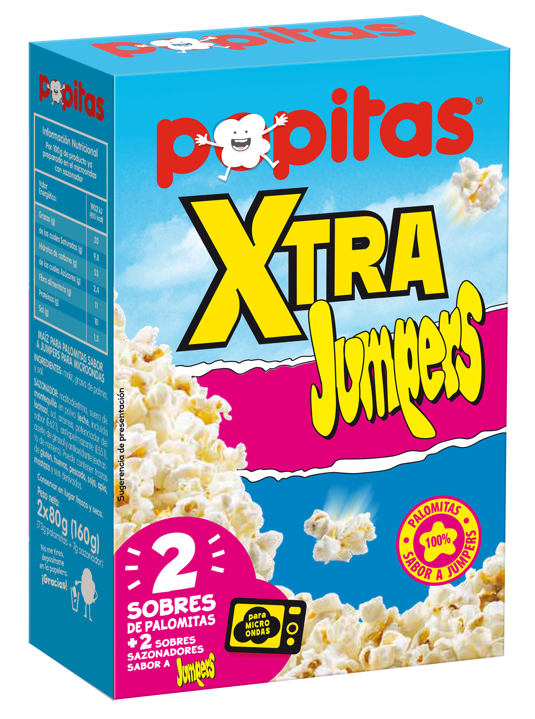 Popitas Xtra sabor Jumpers combina crispetes recentment fetes amb el mític sabor Jumpers mantega, creant una fusió inesperada i totalment innovadora. Una proposta que eleva l’snacking tradicional en unir dues icones en una experiència cruixent, saborosa i sorprenent.