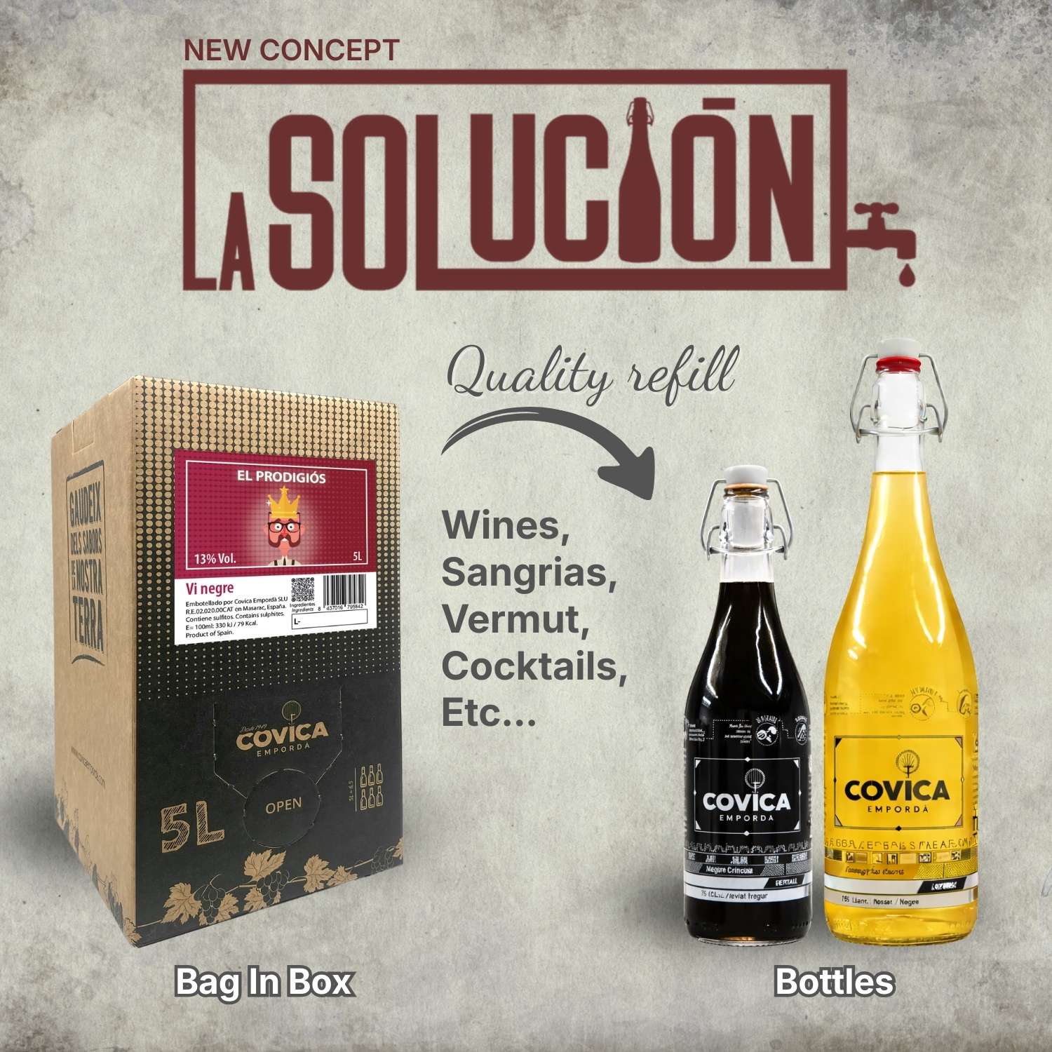 Covica Empordà lanza “La solución” en la manera de comercializar sus vinos y licores para reducir envases y favorecer el ahorro económico y la sostenibilidad.